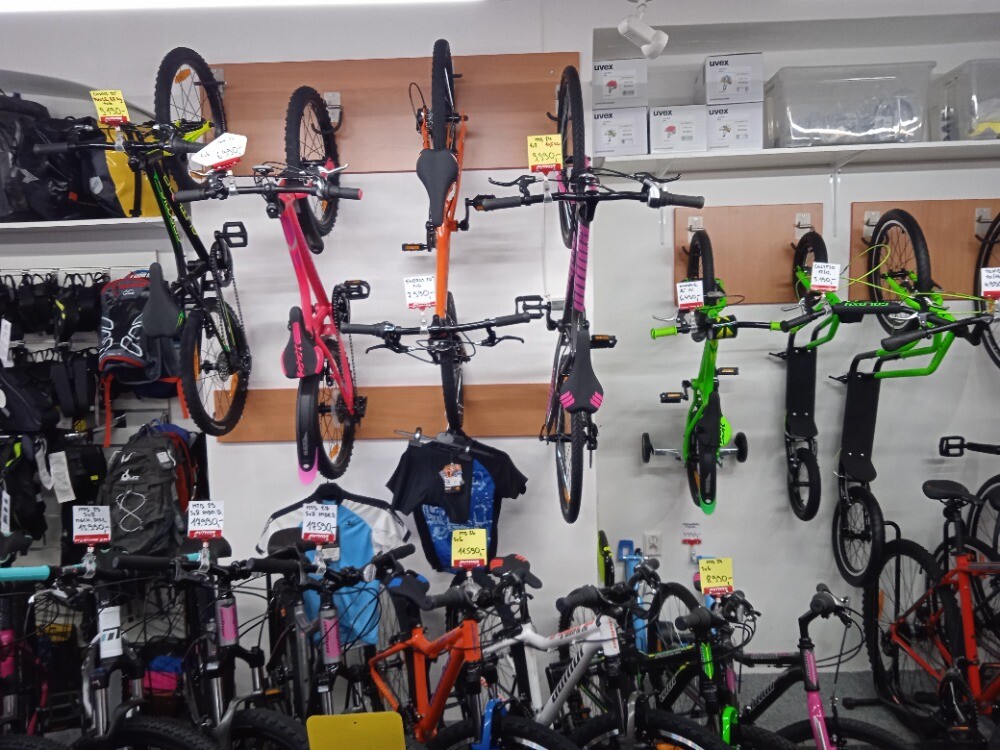 V naší prodejně ve Svitavách najdete široký sortiment jízdních kol, elektrokol a příslušenství, samozřejmostí jsou také náhradní díly a doplňky, jako jsou přilby, brýle, rukavice, zámky na kola, pláště a duše, blatníky, sedla, košíky na lahve, cyklistické lahve, pumpičky a osvětlení na kola. U nás najdete známé a kvalitní značky kol a elektrokol jako Author, Maxbike, Lectron, Leader Fox a Galaxy.